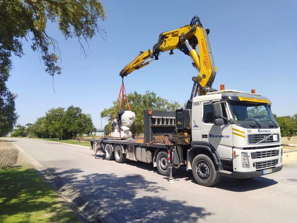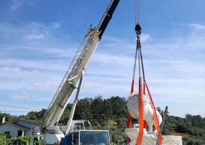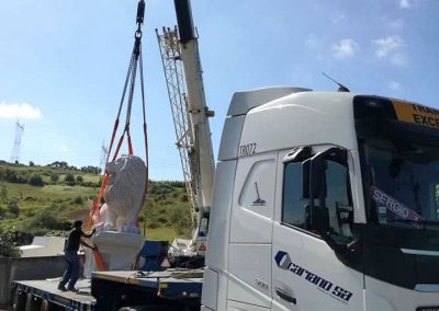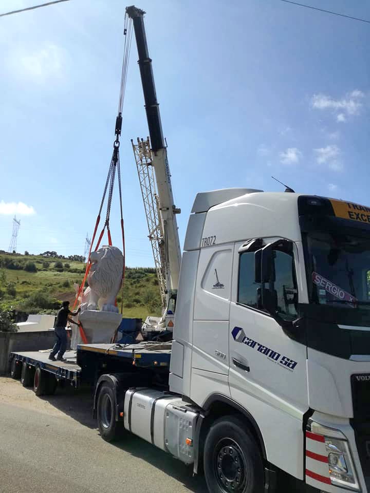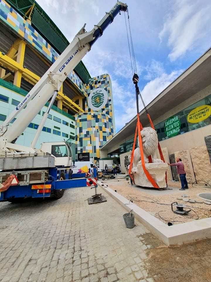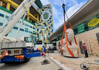 Transporte do Leão, esculpido em rocha calcária , desde o seu local de fabrico até ao Estádio de Alvalade, seguindo-se de todo o auxílio na sua colocação e elevação.
