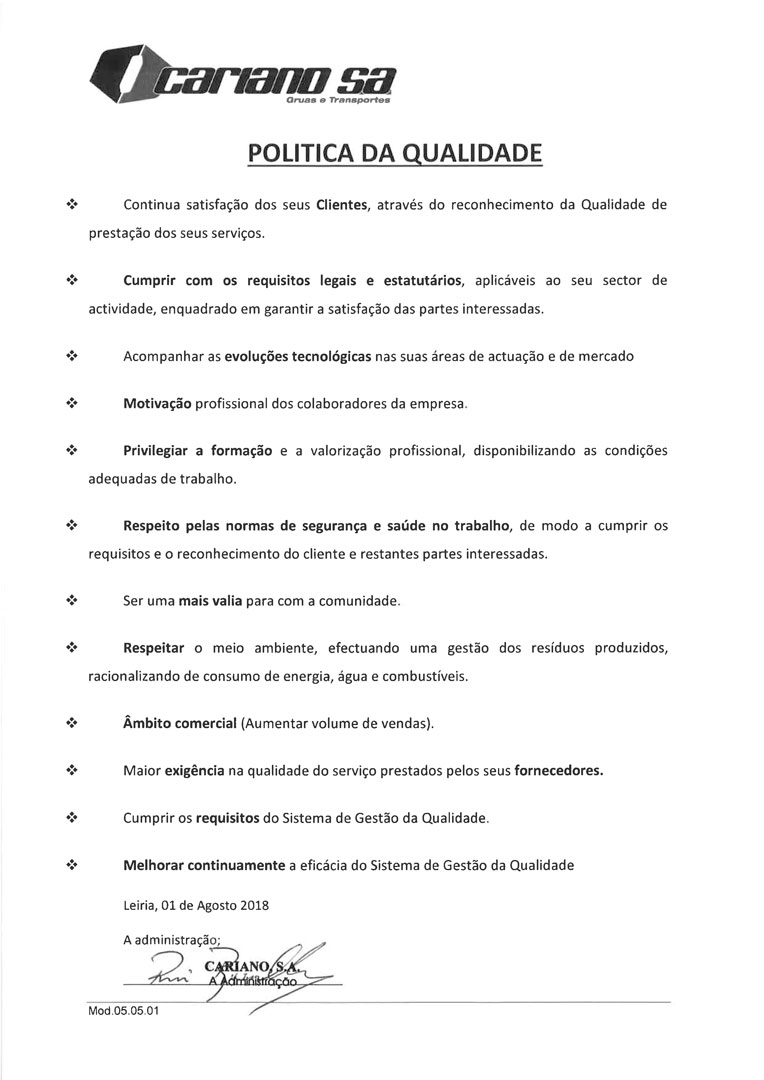 Cumprir com os requisitos legais e estatutários, aplicáveis ao seu sector atividade, enquadrado em garantir a satisfação das partes interessadas.